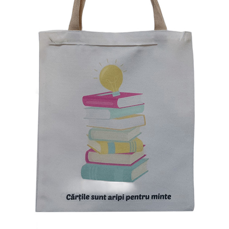 Sacosa Canvas Tote "Carti" este alegerea perfecta pentru iubitorii de lectura si nu numai. Realizata din material textil durabil, aceasta sacosa este ideala pentru transportul cartilor, documentelor sau altor obiecte de zi cu zi. Designul sau simplu, cu imprimeu tematic dedicat cartilor, este completat de manerele albe confortabile, iar dimensiunile de 33 x 35 cm ofera spatiu generos fara a compromite stilul. Practica si expresiva, este companionul perfect pentru biblioteca, scoala sau plimbari.