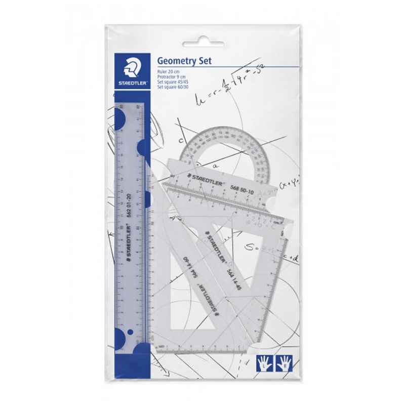 Set geometrie 4 piese, esential pentru activitati scolare sau tehnice. Contine: 1 raportor semicerc, 1 rigla de 20 cm si 2 echere transparente cu ungh...