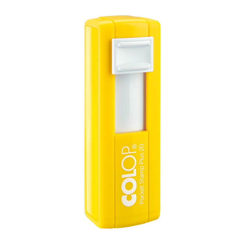 Noul Pocket Stamp PLUS 20 poate fi utilizat cu o singură mână. Are un capac de protectie integrat in mecanismul stampilei, elimina necesitatea folosirii a doua maini si nu poate fi pierdut. Stampilarea este mult mai precisa (un sistem simplu impiedica rotirea placutei de text cu mai mult de 90° in timpul deschiderii). Carcasa compacta si robusta imbunatateste stabilitatea noului Pocket Stamp.